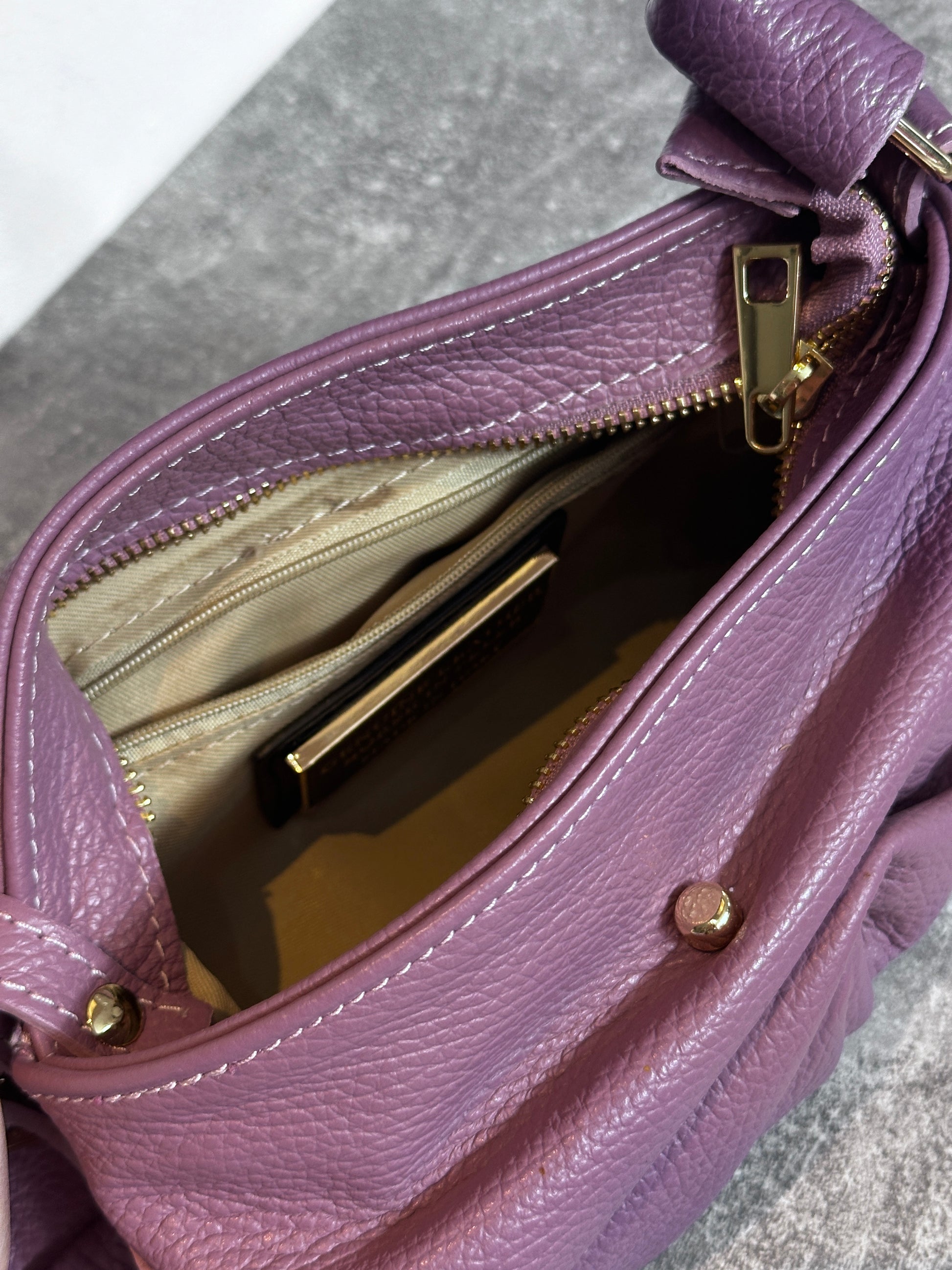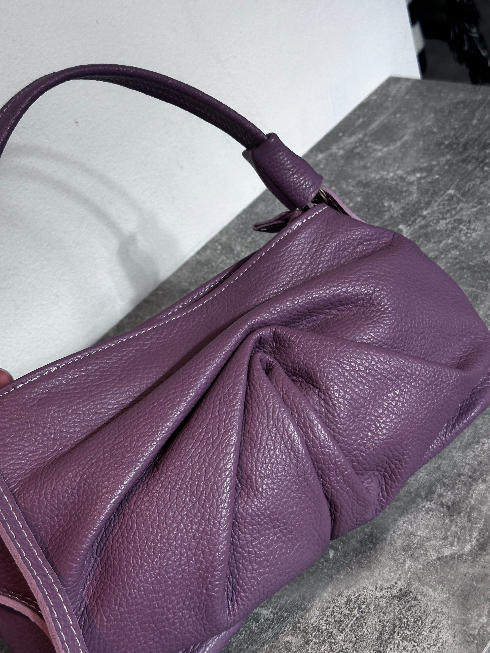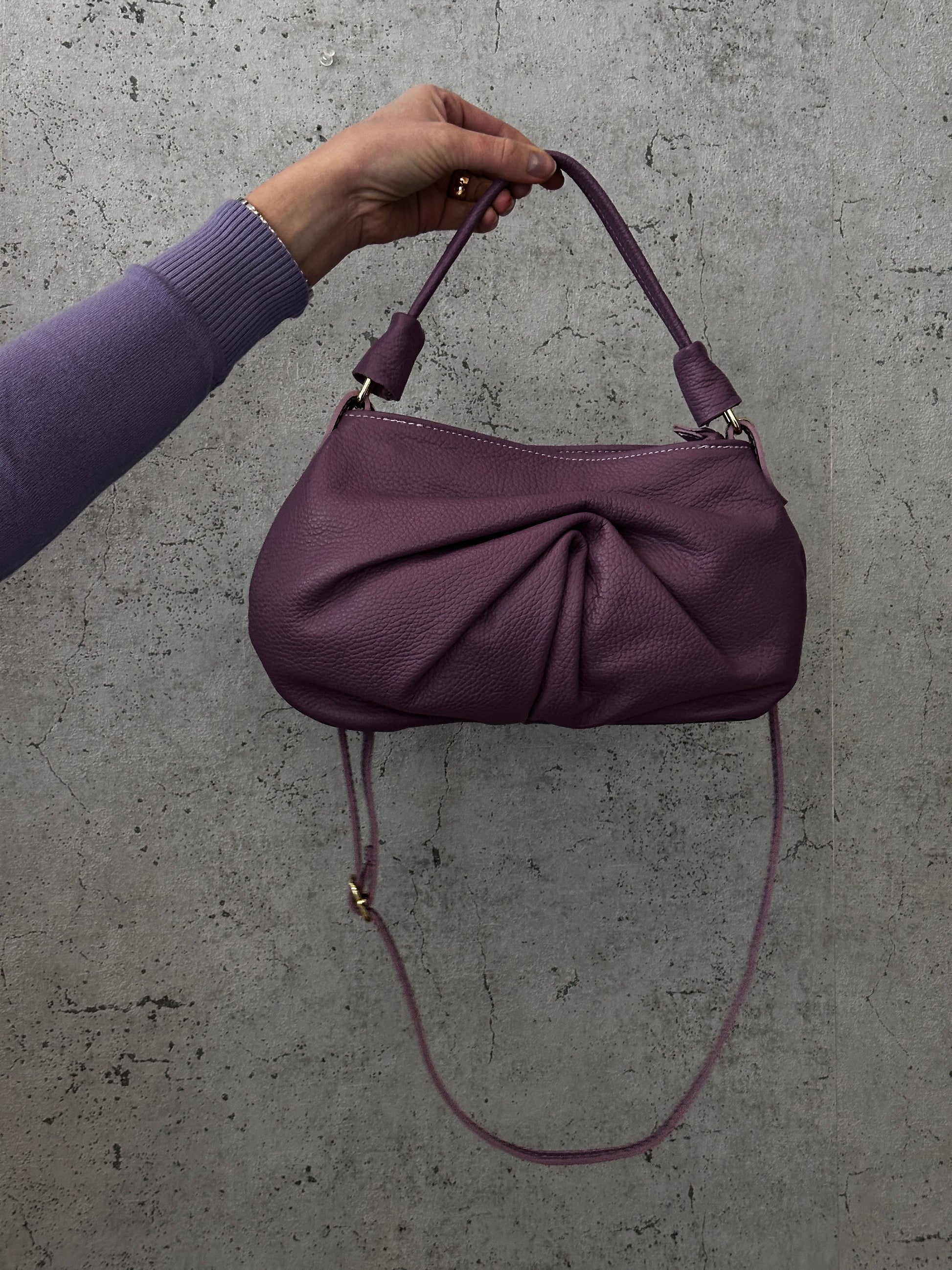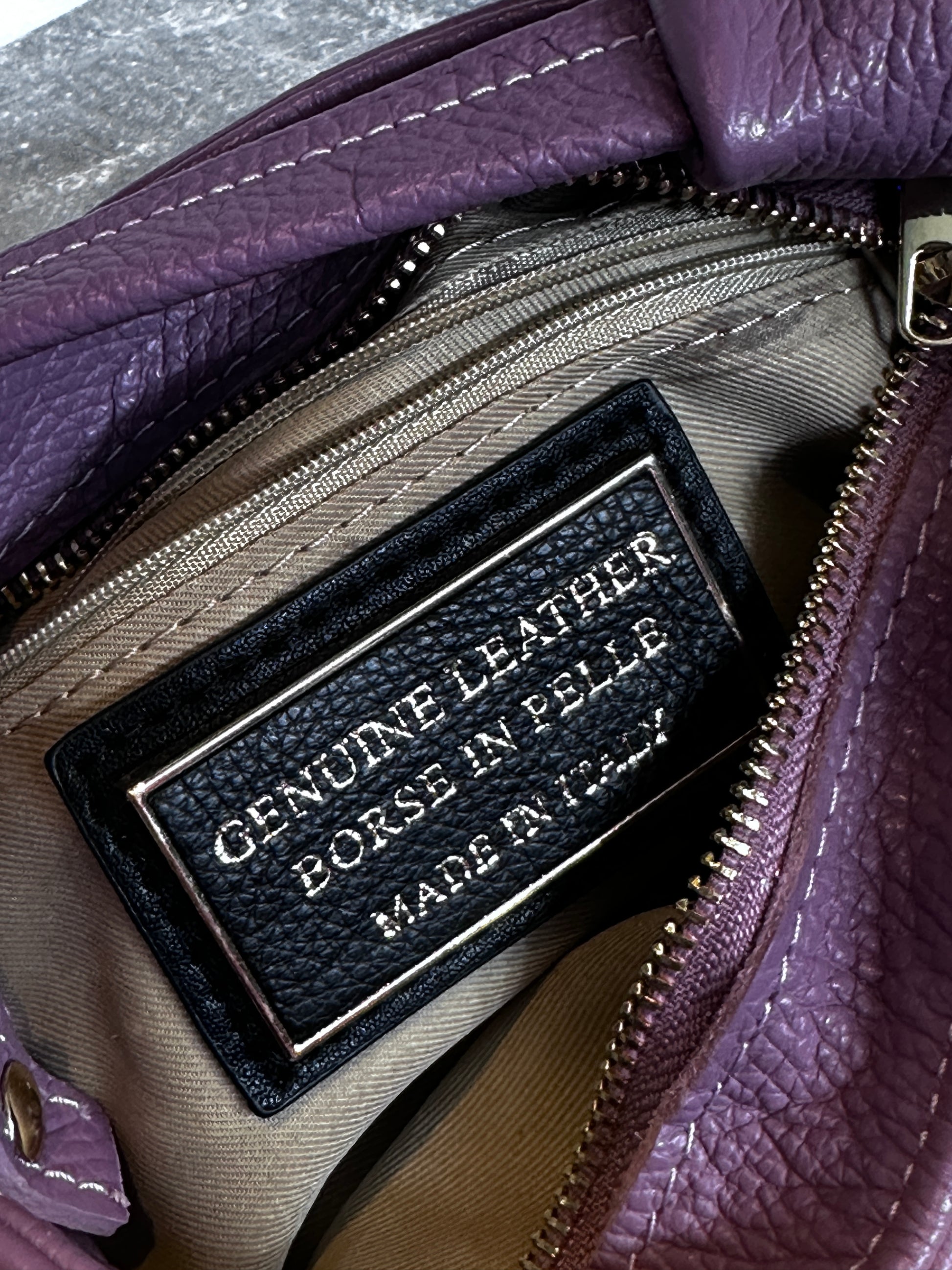 Diese elegante Lederhandtasche in einem soften Mauve-Ton vereint zeitlose Eleganz mit modernem Design. Gefertigt aus hochwertigem, genarbtem Echtleder und liebevoll in Italien produziert, ist sie der perfekte Begleiter für deinen Alltag und besondere Anlässe.