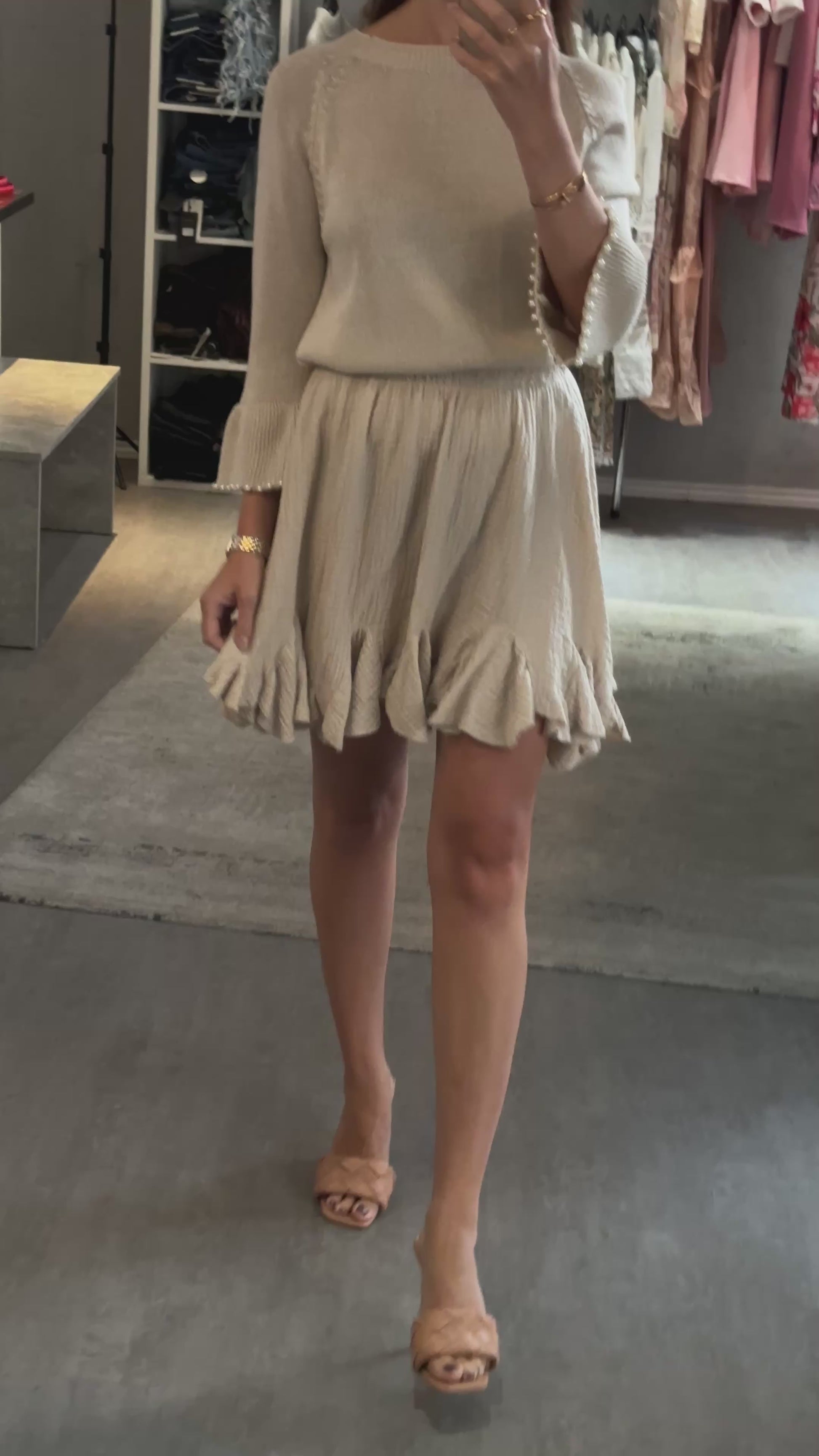 - Schnitt: Locker fallend, mit elastischem Taillenbund und verspieltem Rüschenabschluss